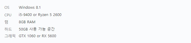 여기까지 카카오게임즈의 디스테라의 사양에 대해서 알아보았습니다. 근래에 나오는 게임들은 모두 사양이 높은 것을 알 수 있습니다. 하지만 디스테라는 아직 정식으로 출시가 되지 않았기 때문에 사양은 언제든지 변할 수 있을 것 같습니다.